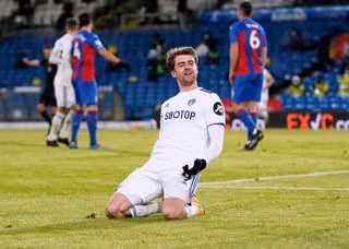 08 February 2021, United Kingdom, Leeds: Leeds United's Patrick Bamford celebrates scoring his side's second goal during the English Premier League soccer match between Leeds United and Crystal Palace at Elland Road. Photo: Jon Super/PA Wire/dpa - Jon Super/PA Wire/dpa