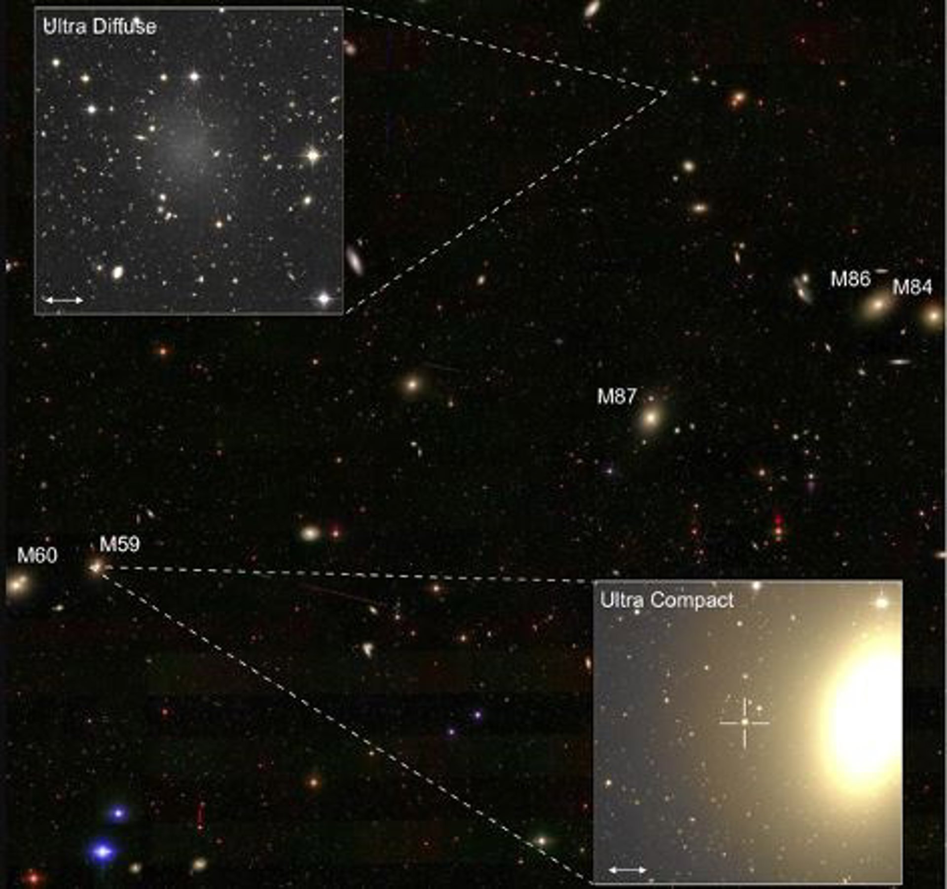 El equipo identificó galaxias ultracompactas y ultradifusas como parte de un censo sin precedentes de galaxias que residen en el cercano cúmulo de Virgo. La investigación utilizó datos de la Next Generation Virgo Cluster Survey (NGVS), obtenidos en el Telescopio Canadá-Francia-Hawai (CFHT) utilizando MegaCam, una cámara óptica de campo amplio. A una distancia de 50 millones de años luz, Virgo es el cúmulo de galaxias más cercano a la Vía Láctea y contiene varios miles de galaxias miembros, la mayoría de las cuales se revelan, por primera vez, en los datos de NGVS.