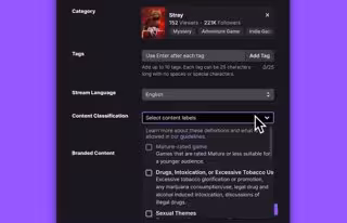 Twitch ha estrenado las etiquetas de clasificación de contenido, un sistema que permite a los 'streamers' clasificar el tipo de contenido que ofrecen y aclarar su en sus reproducciones se incluyen apuestas, blasfemias o representaciones violentas.